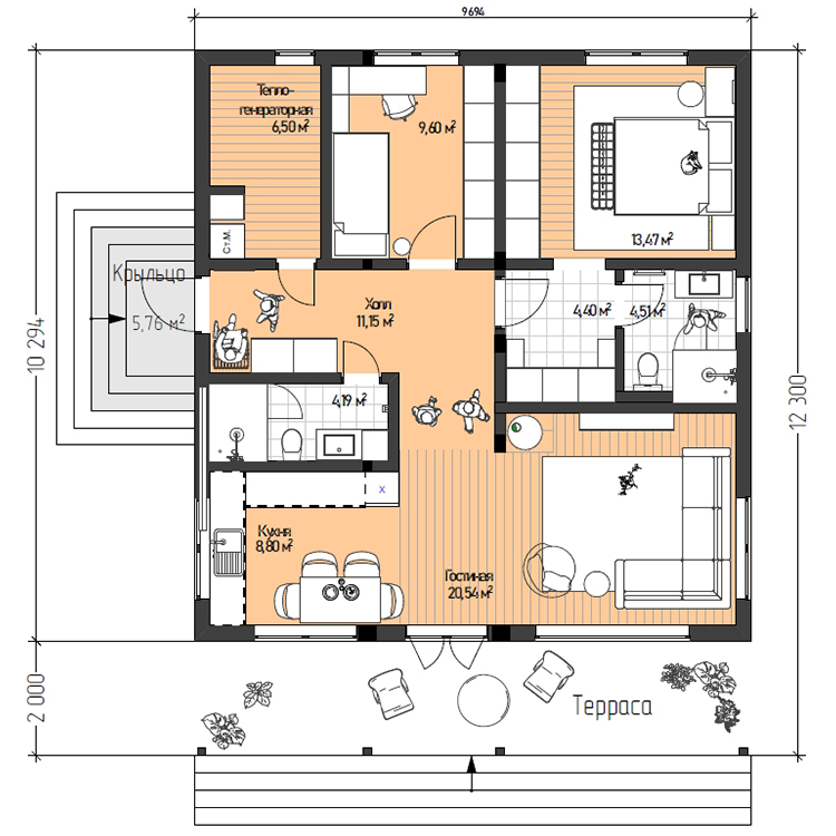 Проект ПИКАССО стал настолько популярен, что наши архитекторы создали его компактную версию — ПИКАССО МИНИ. Его площадь — 114 м². На 15 м² меньше. А в остальном он точно такой же.